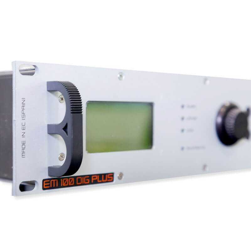 Der Sender verfügt über eine intuitive Benutzeroberfläche mit einem großen LCD-Bildschirm und einem Multifunktionsknopf für eine einfache Konfiguration. Der EM 100 DIG PLUS kann mit verschiedenen Optionen wie einem internen Stereo-Generator, RDS-Funktionalität, einem digitalen AES/EBU-Audioeingang und SNMP-Telemetrie für die Fernverwaltung erweitert werden.