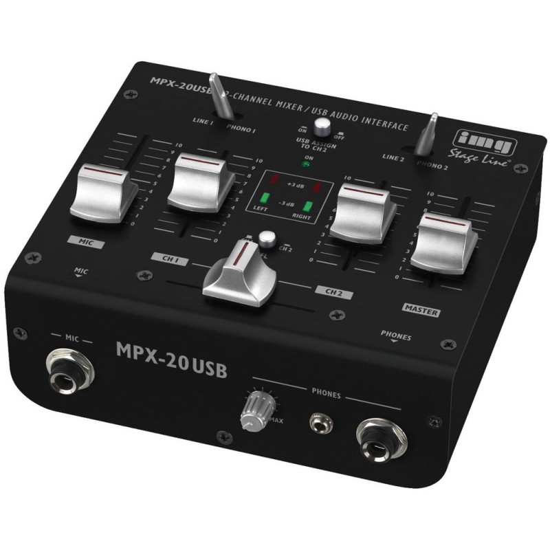IMG -Stage Line 3-kanaals stereo DJ mixer, MPX-20-USB, met USB-interface. Plug en mix